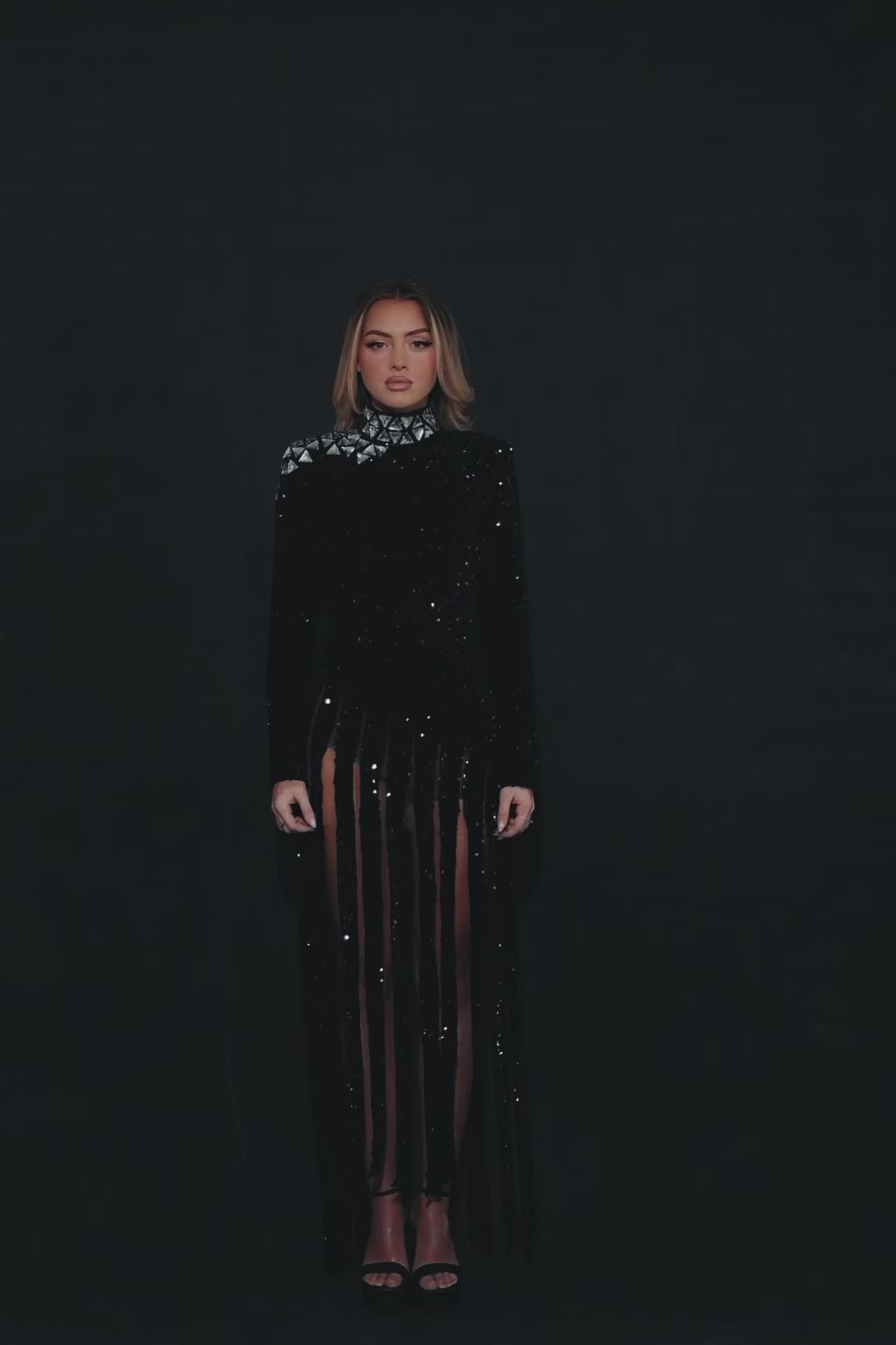 Whether you're going to a special event, a fancy party, or a night on the town, this shimmering dress with its fringes and mirror-adorned collar will make you the star of the show. It's a captivating choice that guarantees you'll stand out and leave a lasting impression, all while keeping your look chic and stylish.