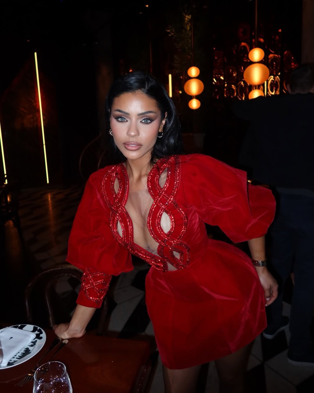 Unique chest cut with embroidery pearls
